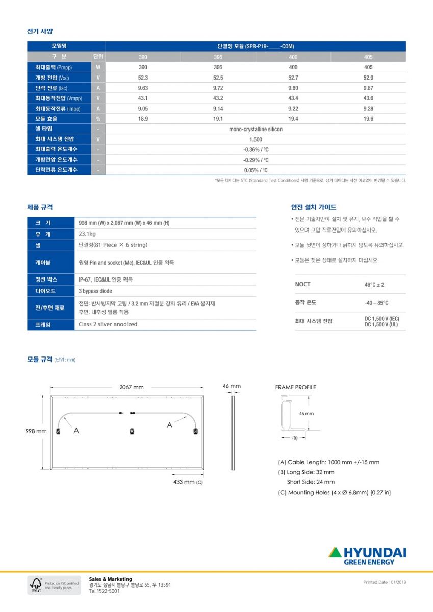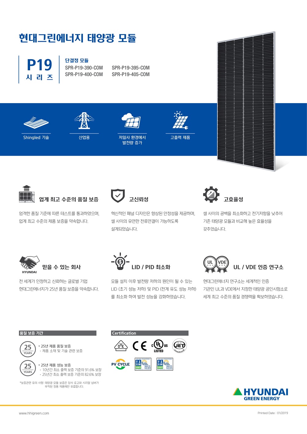[현대 그린에너지] 현대P19시리즈 단결정SPR-P19-400
