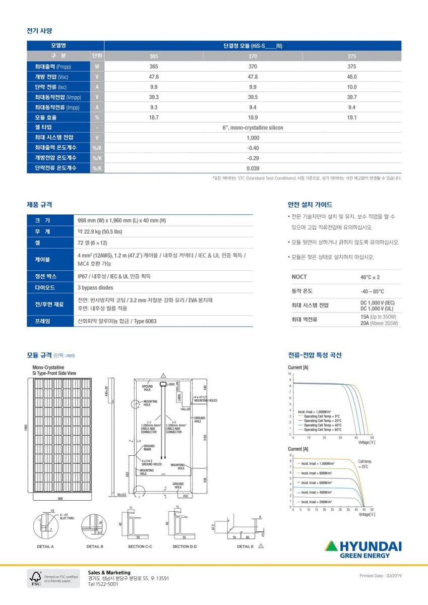 [현대 그린에너지] 현대RI시리즈 단결정HIS-S375RI