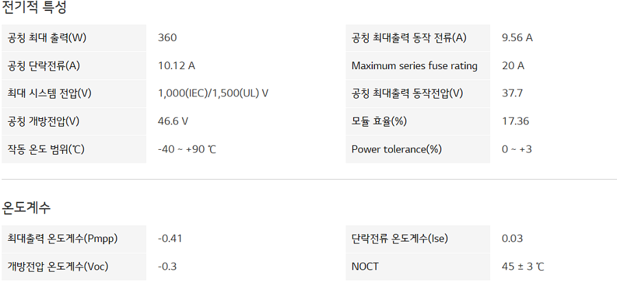 [LG전자] LG태양광 초고효율 모듈(P타입)360S2W
