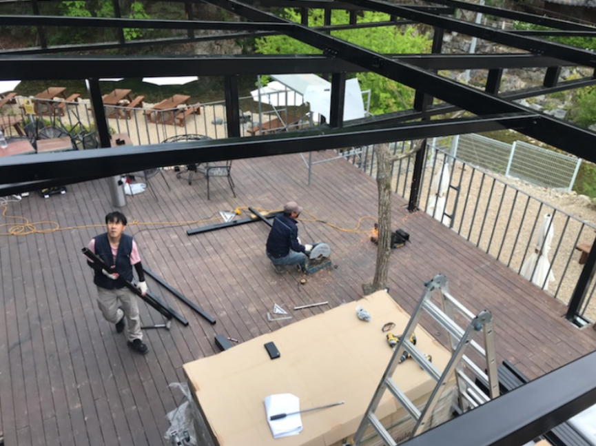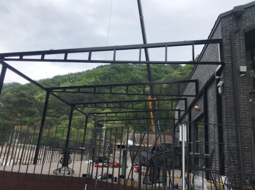 오늘 설치사례는 태양광캐노피를 강원도 펜션에 있는 카페에 설치해드렸던 현장입니다. ![]() ![]() 요즘은 전국적으로 카페가 워낙 성황인데요. 커피를 좋아하는 우리나라 사람들의 영향인지 아니면 카페가 도서관이 되어버린 요즘의 공부문화때문인지는 잘 모르겠네요. ![]() ![]() 태웅솔라에서는 고객의뢰가 오면 현장방문을 통해 실측을 해서 고객님과 태양광캐노피 컬러나 사이즈등에 대해 확정을 하고 3D 스케치를 통해 고객님에게 먼저 설치될 태양광캐노피 구조에 대해 보다 사실감있게 설명을 드린답니다. ![]() ![]() 그렇게하고나서 저희가 직접 운영하는 공장에서 방수와 방염이 되는 분체도장을 실시하여 컬러 혹은 화이트 구조물을 현장에서 조립만 하여 시간을 줄이고 불필요한 인력활용 역시 줄인답니다. ![]() ![]() 오늘 현장은 워낙 태양광캐노피 구조가 크가보니 크레인까지 동원해서 구조물과 필요한 자재들을 운반했답니다. ![]() ![]() 딱맞는 장비와 숙련된 기술인력으로 분체도장한 구조물들을 기둥부터 바닥에 잘 고정하고 거더를 얹으면 일단 기본구조물이 완성되고요. ![]() ![]() 여기에 태웅솔라의 핵심재료인 양면그라스모듈을 설치함으로써 방수는 기본이고 훌륭한 그늘막에다 무엇보다 태양발전시설로 건축법의 영향을 1도 받지않는 탁월한 태양광캐노피가 완성되는데요. ![]() ![]() 태웅솔라에서 시공하는 양면그라스모듈은 100% 방수, 양면그라스모듈이기에 태양빛도 투과해서 답답하지 않은 자연조명을 받을 수 있고 전기료까지 절감되니 1석 삼사조네요! 마지막 화룡점정으로 레일등까지 설치해서 야간에도 카페테라스에서 마음껏 이용하실 수 있게 해드렸답니다. ![]() ![]() 태웅솔라는 자체적으로 분체도장한 구조물들로 양면그라스모듈을 이용한 탁월한 태양광시설물들을 전국적으로 설치해드리고 있습니다. 오랜 경력으로 오차없이 무결점시공해드리고 있으니 편하게 문의주세요~ 문의 1855-4688 / 010-9700-3445 |