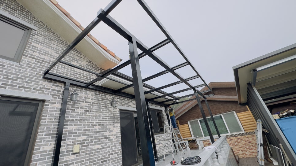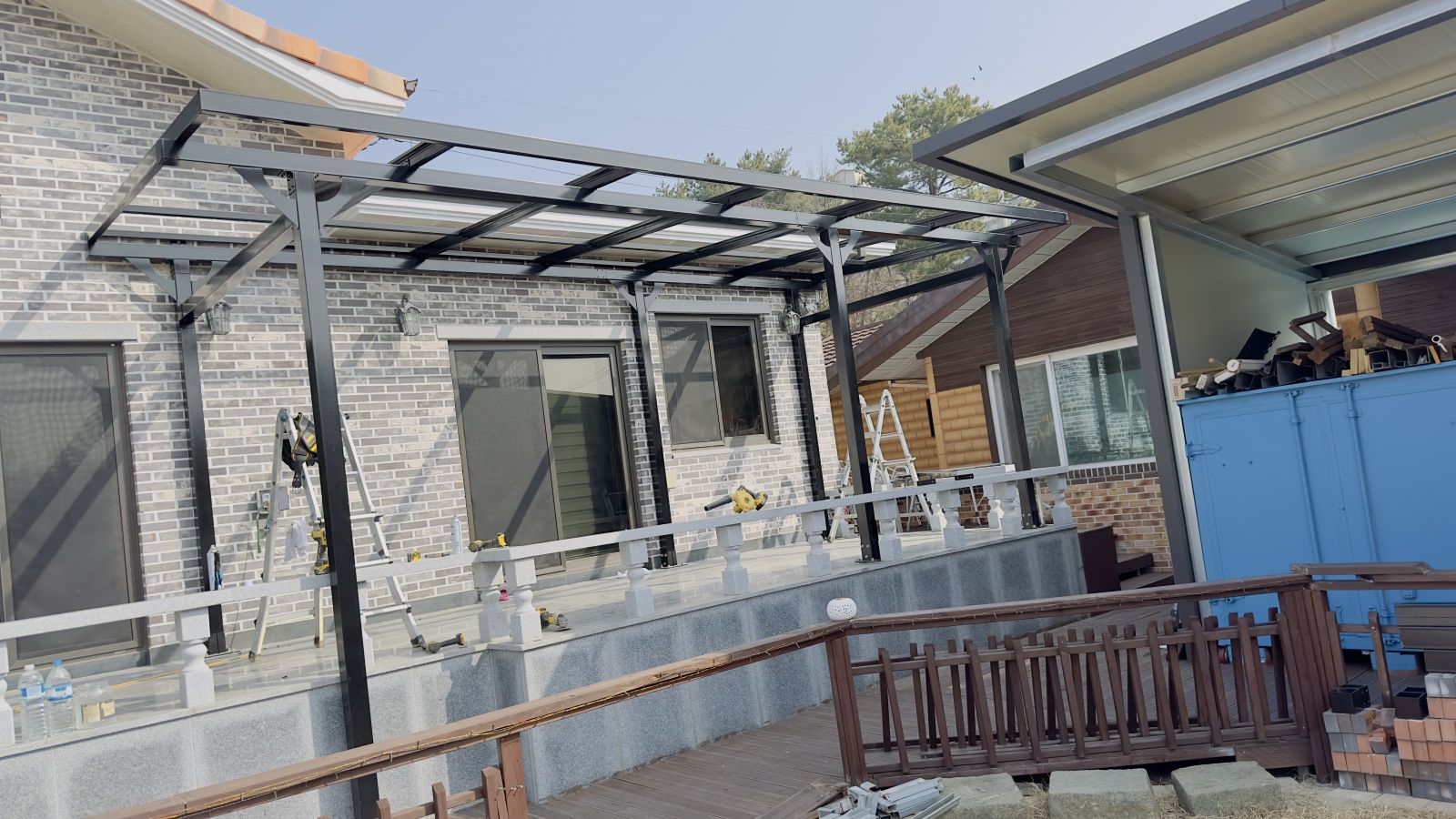 ![]() 요즘처럼 에너지 요금이 점점 올라가는 시대에, 조금 더 친환경적이고 경제적인 생활을 해보자는 마음으로 태양광 캐노피를 설치하게 되었습니다. 태양광캐노피는 단순한 지붕이 아닌, 전기를 직접 생산할 수 있는 멋진 공간이 되어주었답니다. 설치 과정을 차근차근 담아봤으니, 혹시 비슷한 고민을 하고 계신 분들께 도움이 되시길 바랍니다 첫 번째 단계 – 기초작업과 골조 설치 ![]() 처음 시작은 아주 단단한 기초부터입니다. 테라스 바닥에 정확한 위치를 잡고, 튼튼한 각파이프 철제 기둥들을 하나씩 세워나갑니다. 이때 중요한 건 기둥이 삐뚤어지지 않게 정확히 수직으로 맞추는 것입니다. ![]() ![]() 기둥이 다 세워지고 나면, 그 위에 상부 프레임(골조)를 짜게 되는데요, 이 작업이 끝나면 건물 외형이 제법 그럴듯하게 갖춰지기 시작한답니다. 두 번째 단계 – 태양광 패널 설치 ![]() 이제 본격적으로 태양광 모듈을 얹는 작업이 시작됩니다. 프레임 위에 패널을 하나하나 얹고, 클램프와 고정 브라켓으로 단단하게 고정해 주셨어요. 태양광패널을 설치하면서 동시에 전기 배선도 정리되는데요, ![]() ![]() 이 선들은 나중에 인버터로 연결되어 집 안의 전력 시스템과 연동됩니다. 이 날은 날씨도 좋고 햇살도 강해서, "이 패널들 정말 전기 잘 만들어주겠구나!" 하는 생각이 절로 들더라고요 세 번째 단계 – 마감과 전기 연결 ![]() 태양광 패널이 모두 설치된 후에는 전기 배선 작업과 방수 마감이 이뤄졌어요. 혹시나 빗물이 들어갈 수 있는 틈은 없는지 꼼꼼히 확인하고, 실리콘으로 빈틈을 막아주는 작업까지 마무리했습니다.