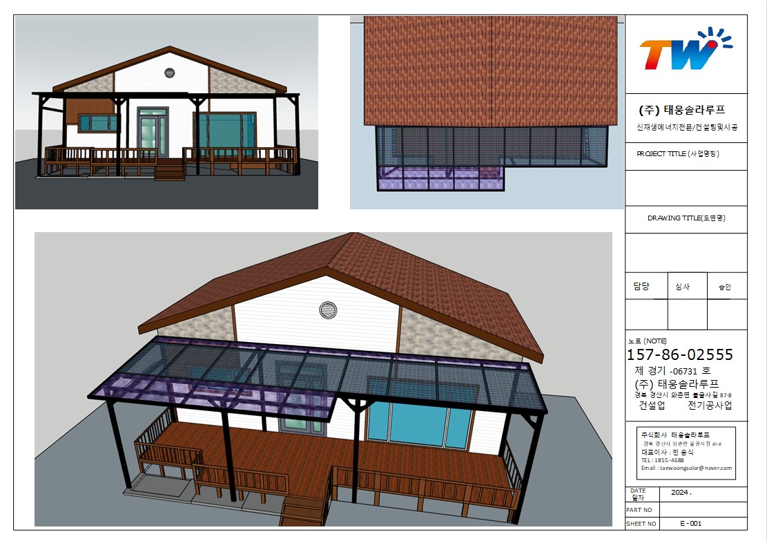 불법이 아닌 합법적인 전기시설로써 캐노피. 파고라. 테라스, 주차장 태양광을 적극 추천 합니다. 매월 생산되는 태양광 발전을 통해 전기세에서 절감이 되니 투자대비 향후 30~40년간 사용하다보면 캐노피태양광의 시공비를 매달 전기세를 통해 세이브가 되고 한전과 상계거래도 되니 일거양득 입니다. 저희 태웅솔라는 국내 최초의 방수태양광업체로서 기능, 디자인, 경제성을 모두 충족시키는 시공을 전문으로 하고 있습니다. 또한, 건축법상 저희는 합법적인 시공을 통해 이러한 문제를 해결하고 있습니다. https://blog.naver.com/taewoongsolar