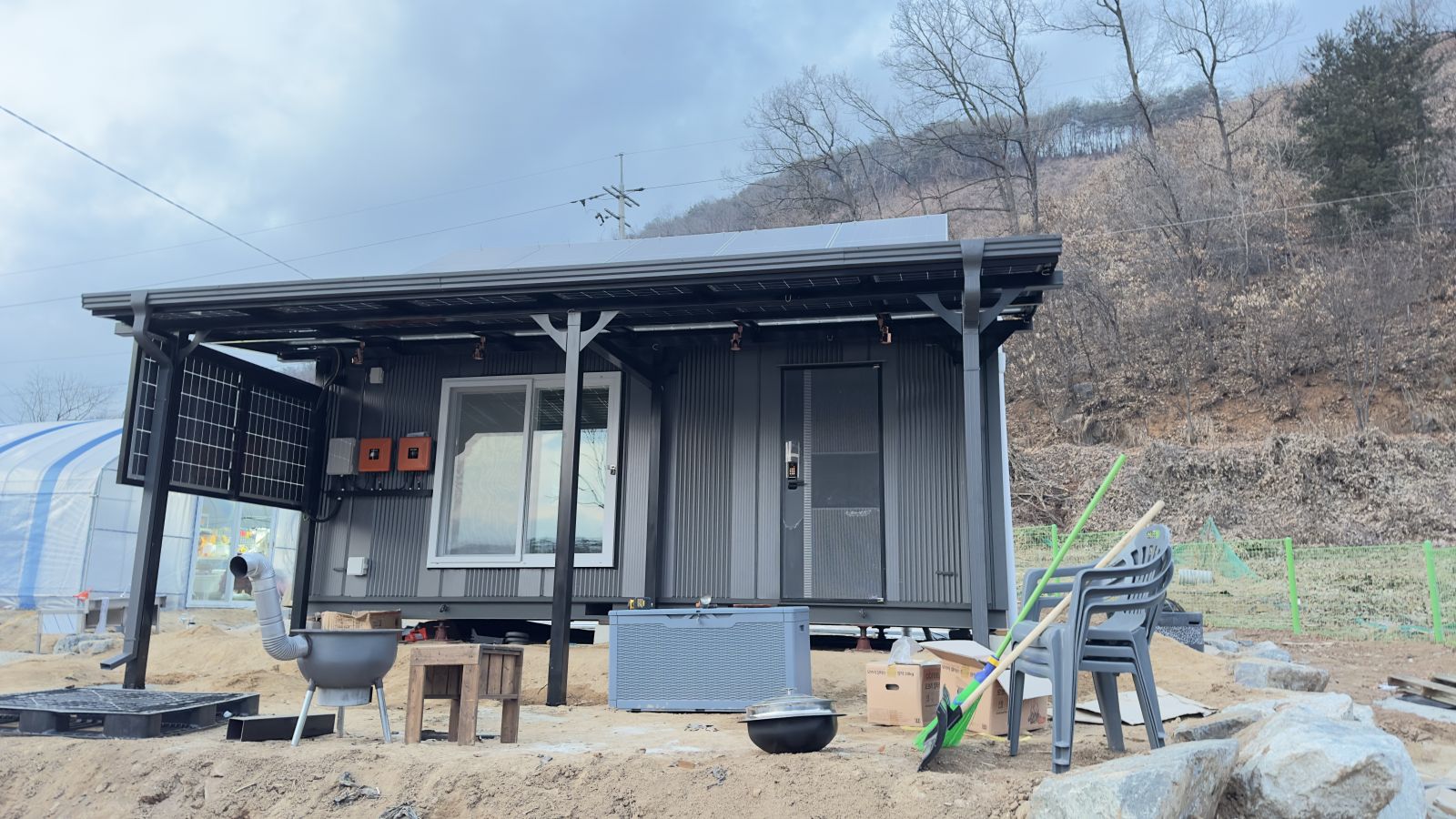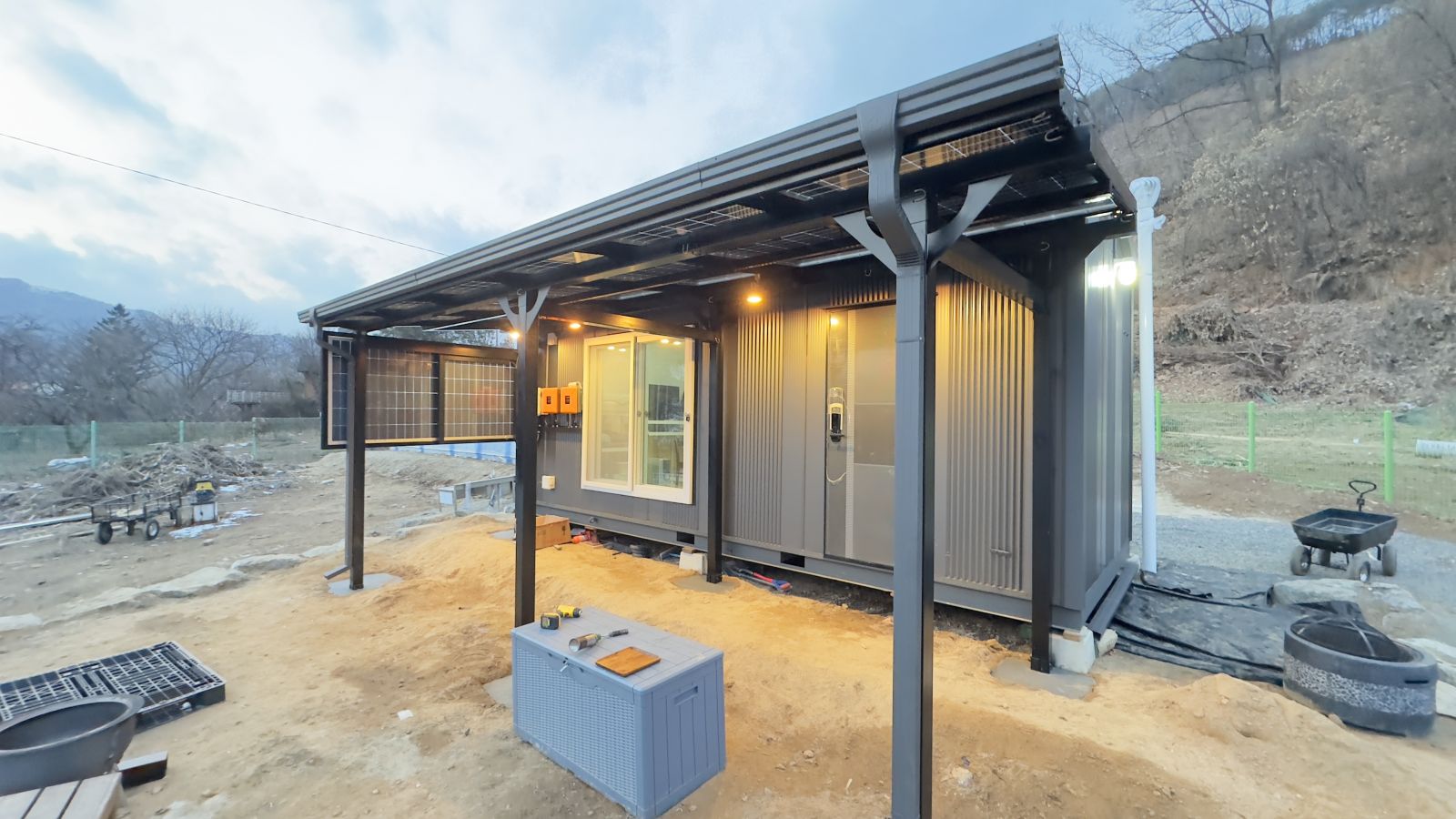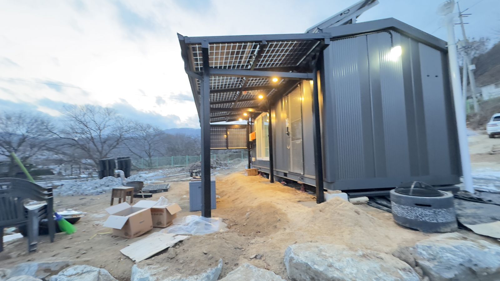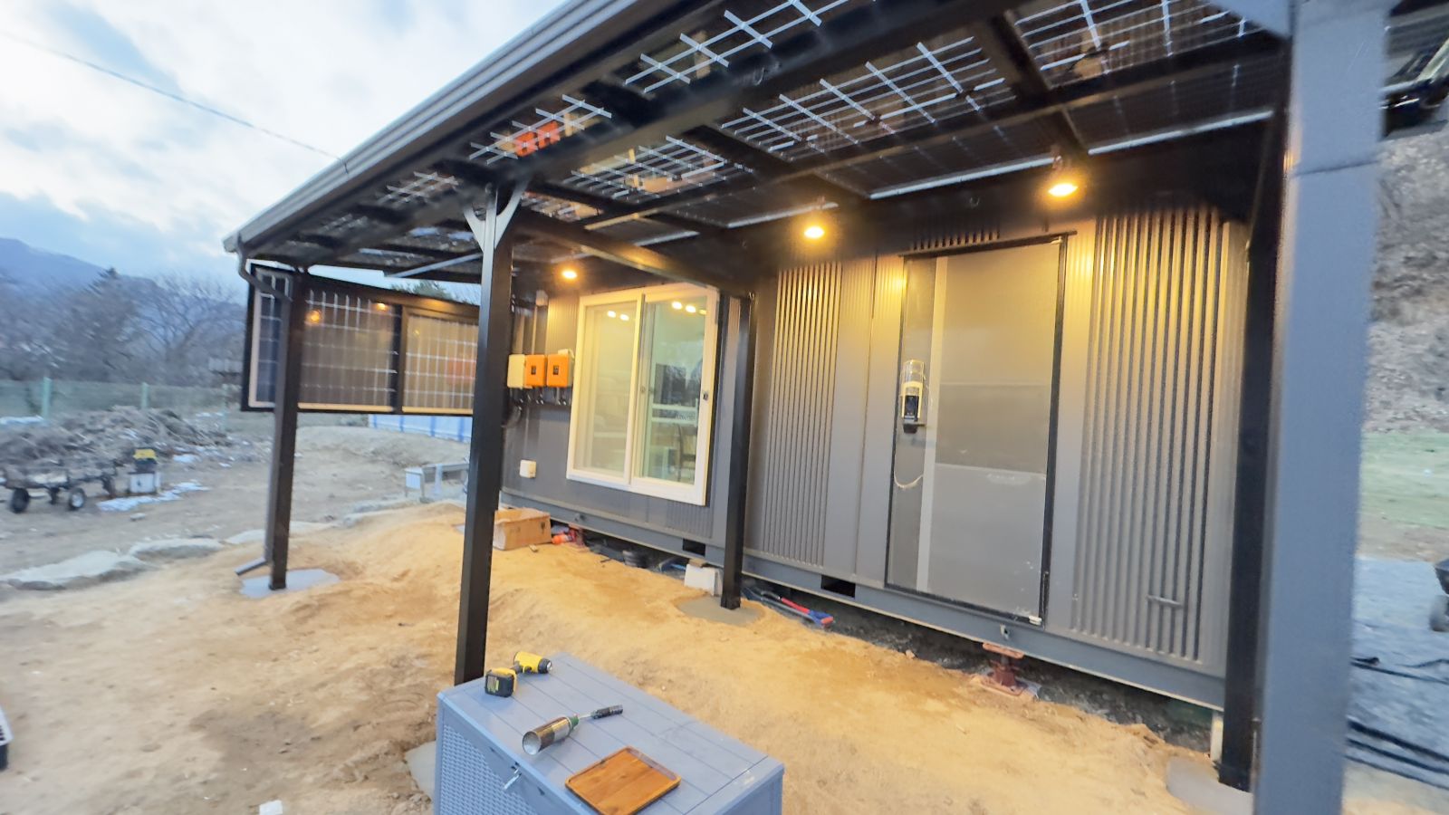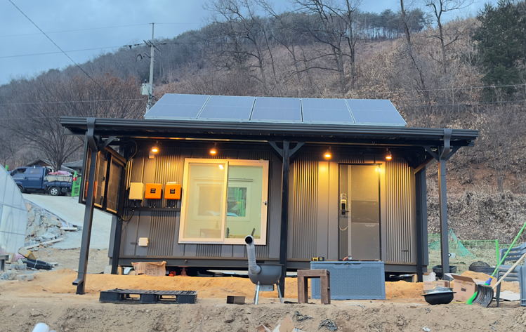 완전히 다르죠?? 태양광 농막으로 시공해서 전기 생산까지 알차게 하고 그냥 컨테이너만 있던 농막에서 럭셔리한 태양광농막이 되었습니다. ![]()