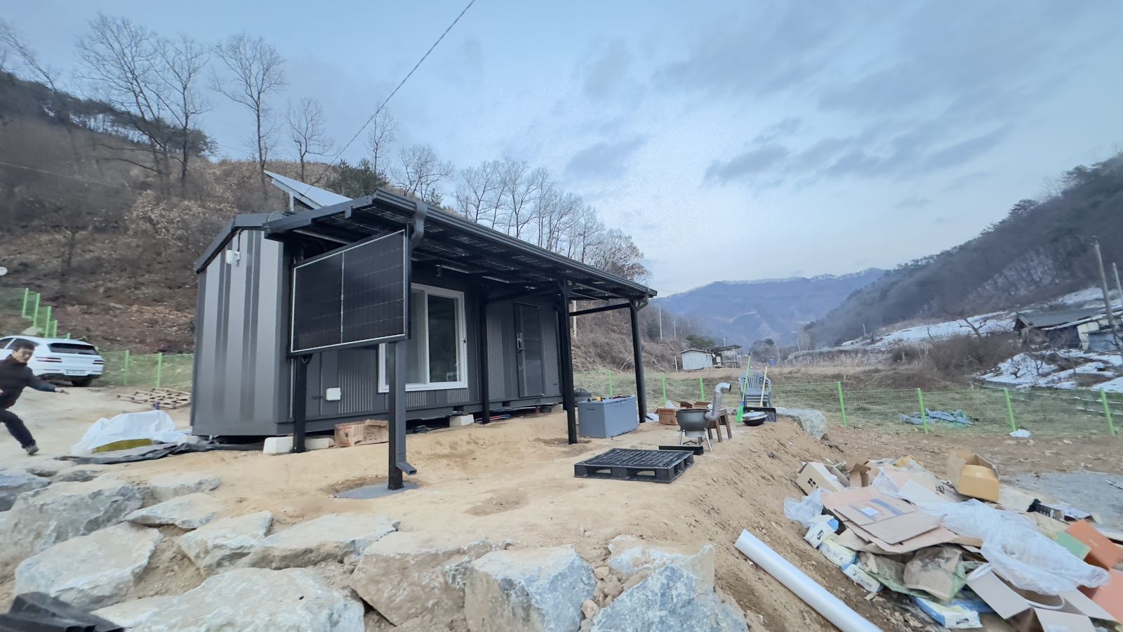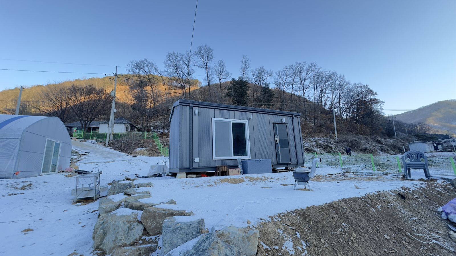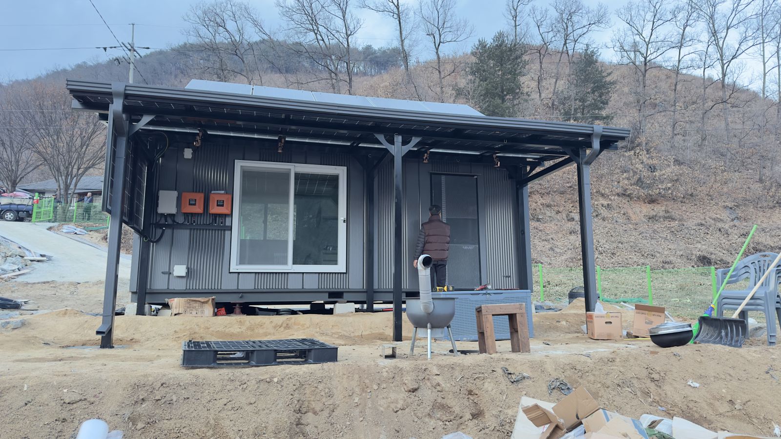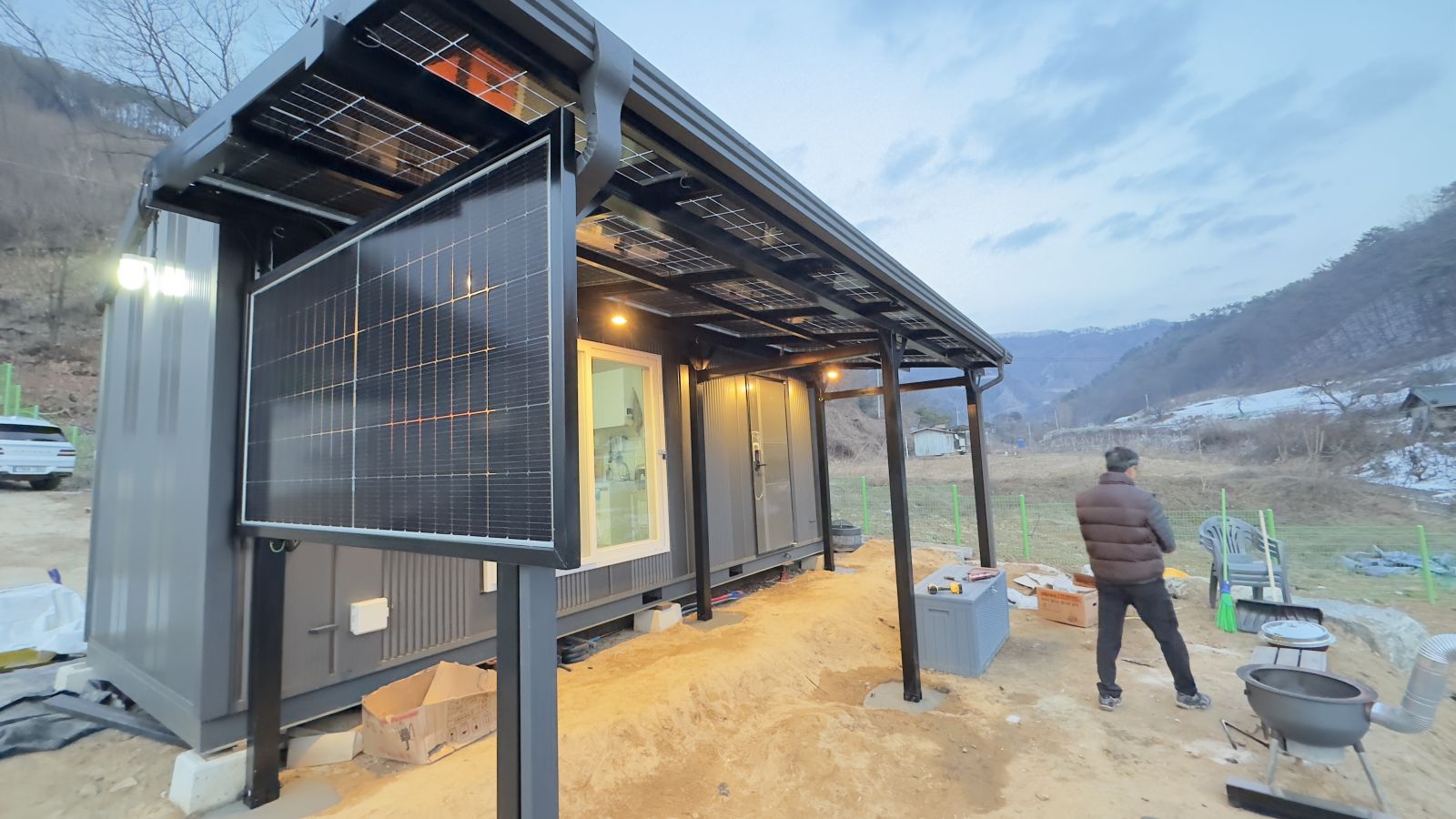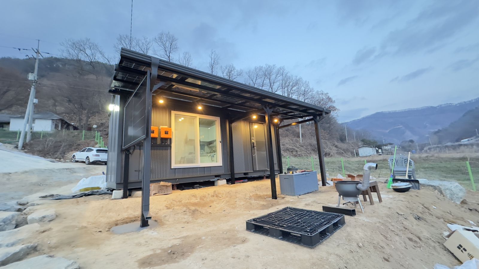 완전히 다르죠?? 태양광 농막으로 시공해서 전기 생산까지 알차게 하고 그냥 컨테이너만 있던 농막에서 럭셔리한 태양광농막이 되었습니다. ![]()